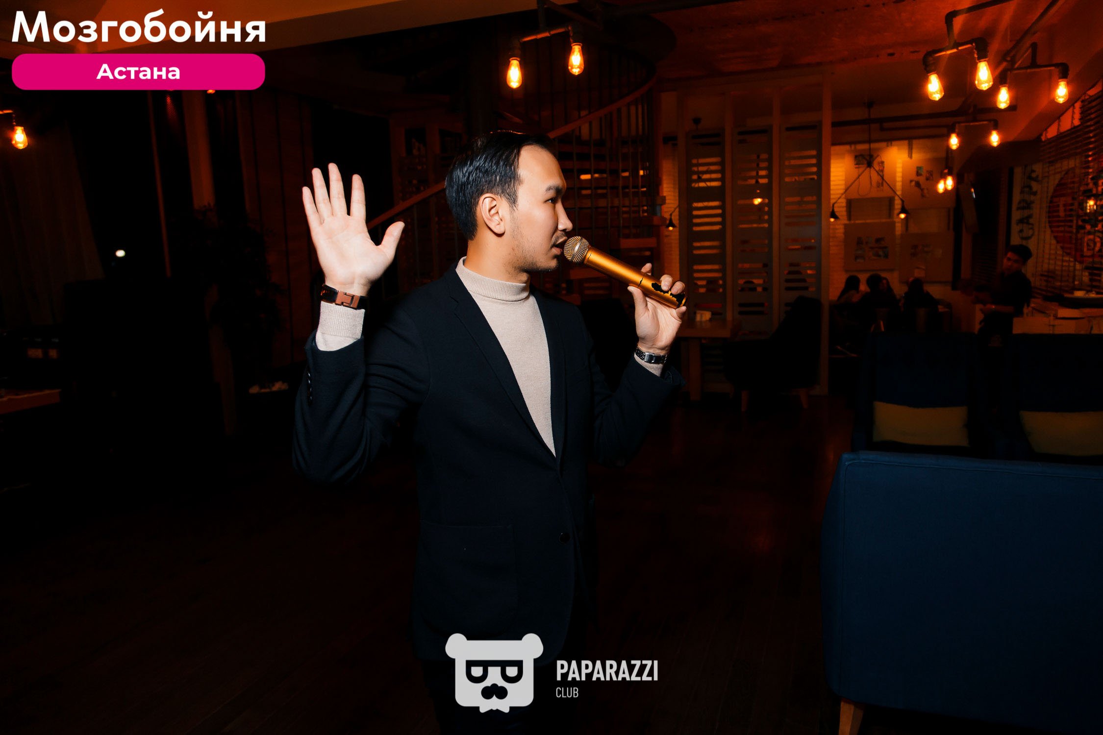 download report КУЛЬТУРА Мозгобойня date: 11/29/2018 views: 4177 Фотоотчет Астана Мозгобойня от 29 ноября 2018 года, фотограф: Мейрманов Диас Другие фотоотчеты Открытие нового RIXY KIDS CLUB @Rixos Borovoe Hotel 07/16/2016 7432 МК "Эмоциональная свобода" с Игорем Ким 03/27/2018 2598 Мастерская #безшпилек • МК по НЛП 05/19/2018 1781 MELOMAN QUIZ • S-18 1990-2000 новички 10/19/2025 983 Интеллектуальная игра ZZ @Sky Bar 01/30/2019 7080 Кулинарный Мастер-класс @Ресторан "На крыше" 01/08/2017 498